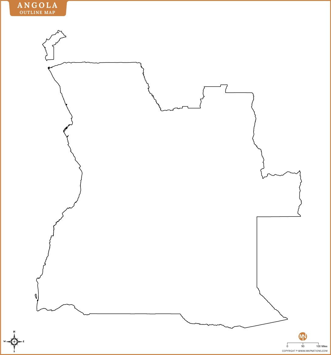 This blank outline map of Angola features clearly defined regional boundaries, making it ideal for educational use, classroom assignments, and geography quizzes. Teachers can use it for printable worksheets, while students can label or color regions. It's also suitable for GIS users and researchers needing a clean, editable base map.