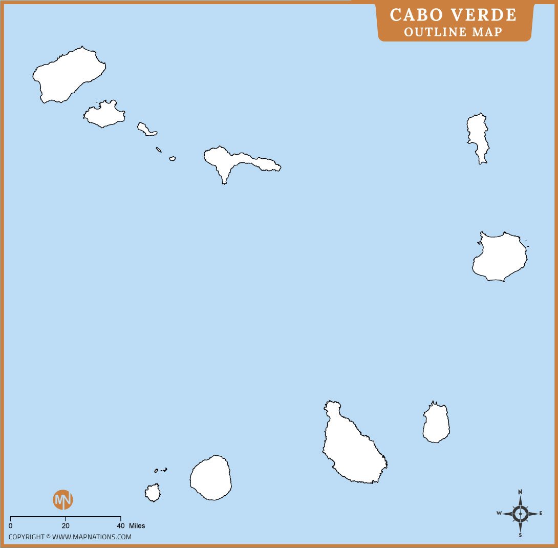 This blank outline map of Cabo Verde features clearly defined regional boundaries, making it ideal for educational use, classroom assignments, and geography quizzes. Teachers can use it for printable worksheets, while students can label or color regions. It's also suitable for GIS users and researchers needing a clean, editable base map.