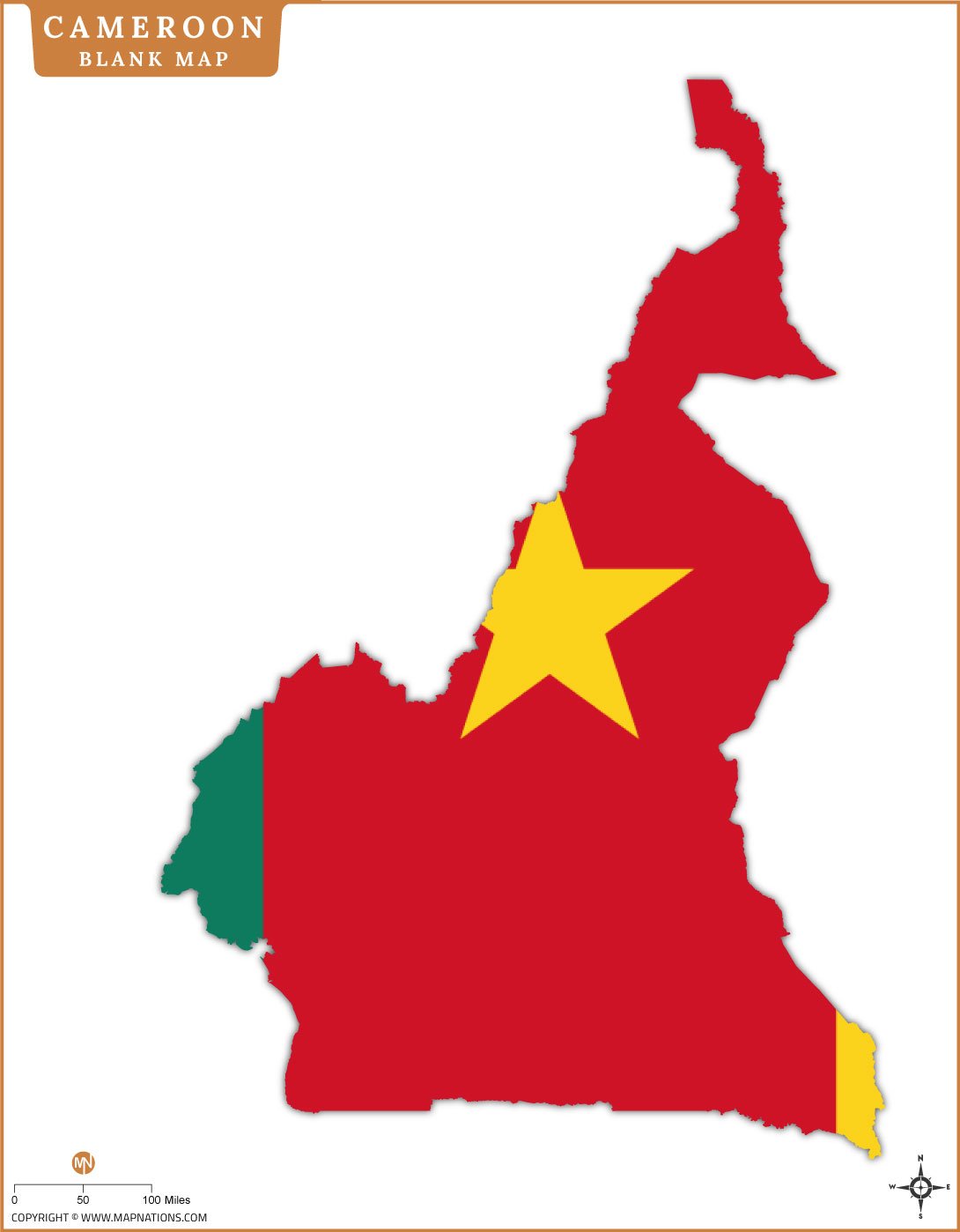 This blank map of Cameroon styled with the national flag highlights the country’s distinctive outline without labels or boundaries. Ideal for educational activities, presentations, and design projects, it allows users to add cities, regions, or thematic data freely. The clean background and bold flag colors make the map suitable for geography lessons, quizzes, posters, and creative cartographic use across classrooms, websites, and print media worldwide for diverse audiences everywhere today.