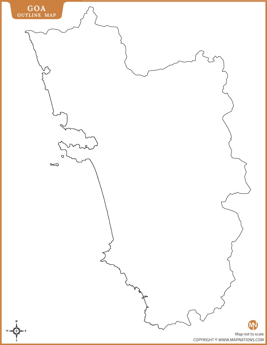 Goa maps provide essential resources for educational, administrative, and geographic purposes. The outline map shows the state's outer boundary, ideal for drawing or marking locations. The blank map displays district divisions, aiding in detailed study, district identification, and custom map creation for classroom or research use.