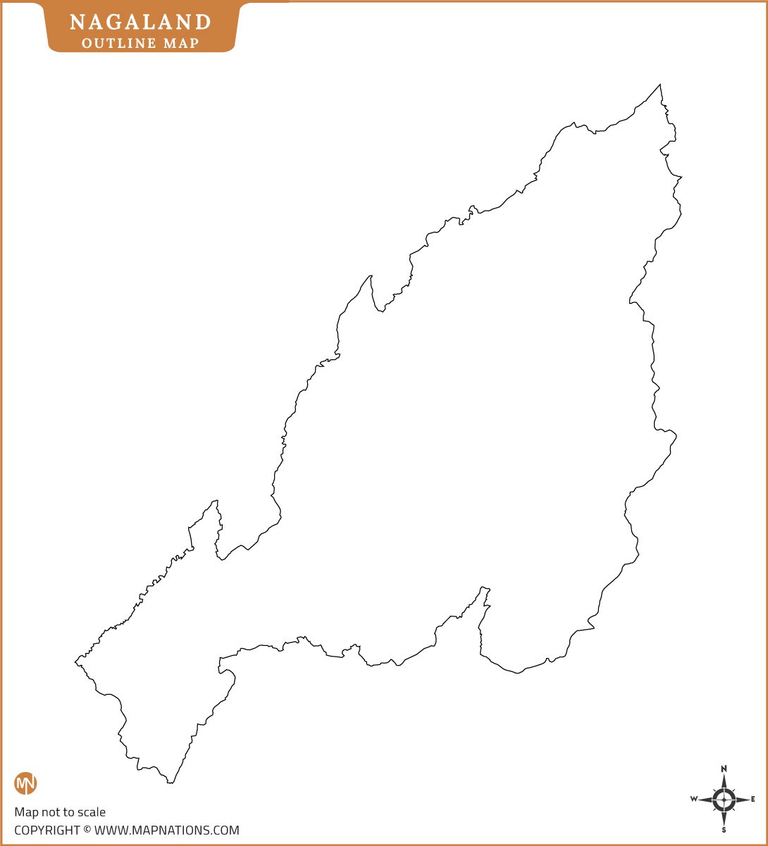 Nagaland maps provide essential resources for educational, administrative, and geographic purposes. The outline map shows the state's outer boundary, ideal for drawing or marking locations. The blank map displays district divisions, aiding in detailed study, district identification, and custom map creation for classroom or research use.