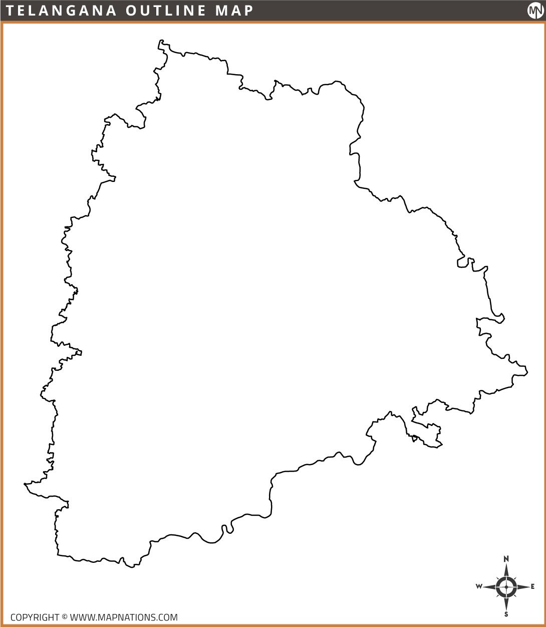 Telangana maps provide essential resources for educational, administrative, and geographic purposes. The outline map shows the state's outer boundary, ideal for drawing or marking locations. The blank map displays district divisions, aiding in detailed study, district identification, and custom map creation for classroom or research use.