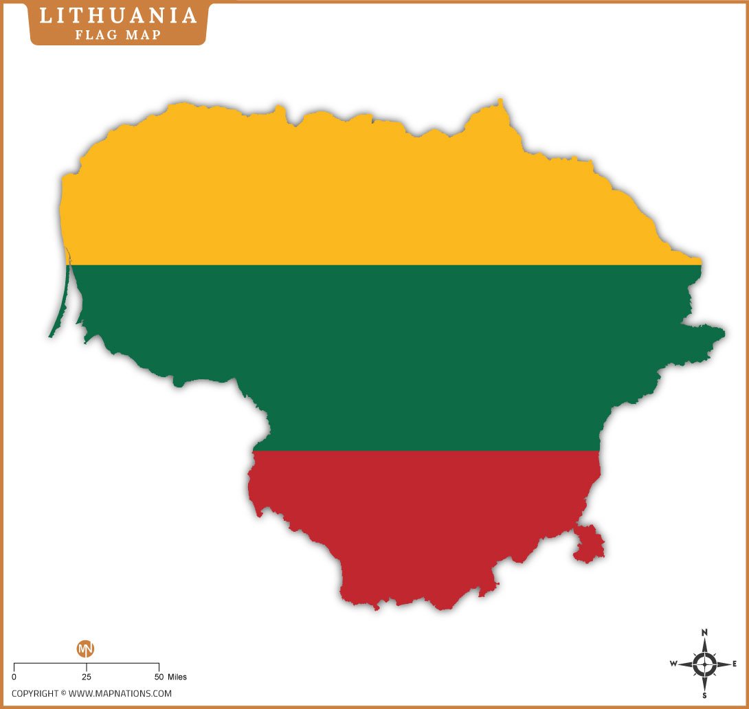 This Lithuania flag map creatively combines the national outline with the tricolor flag, symbolizing the country’s identity, unity, and heritage. The horizontal bands of yellow, green, and red represent prosperity, nature, and sacrifice, respectively. Presented in a clean, minimalist cartographic style, the map is ideal for educational materials, cultural presentations, and digital publications. It helps viewers quickly recognize Lithuania’s geographic shape while reinforcing national symbolism and visual appeal.