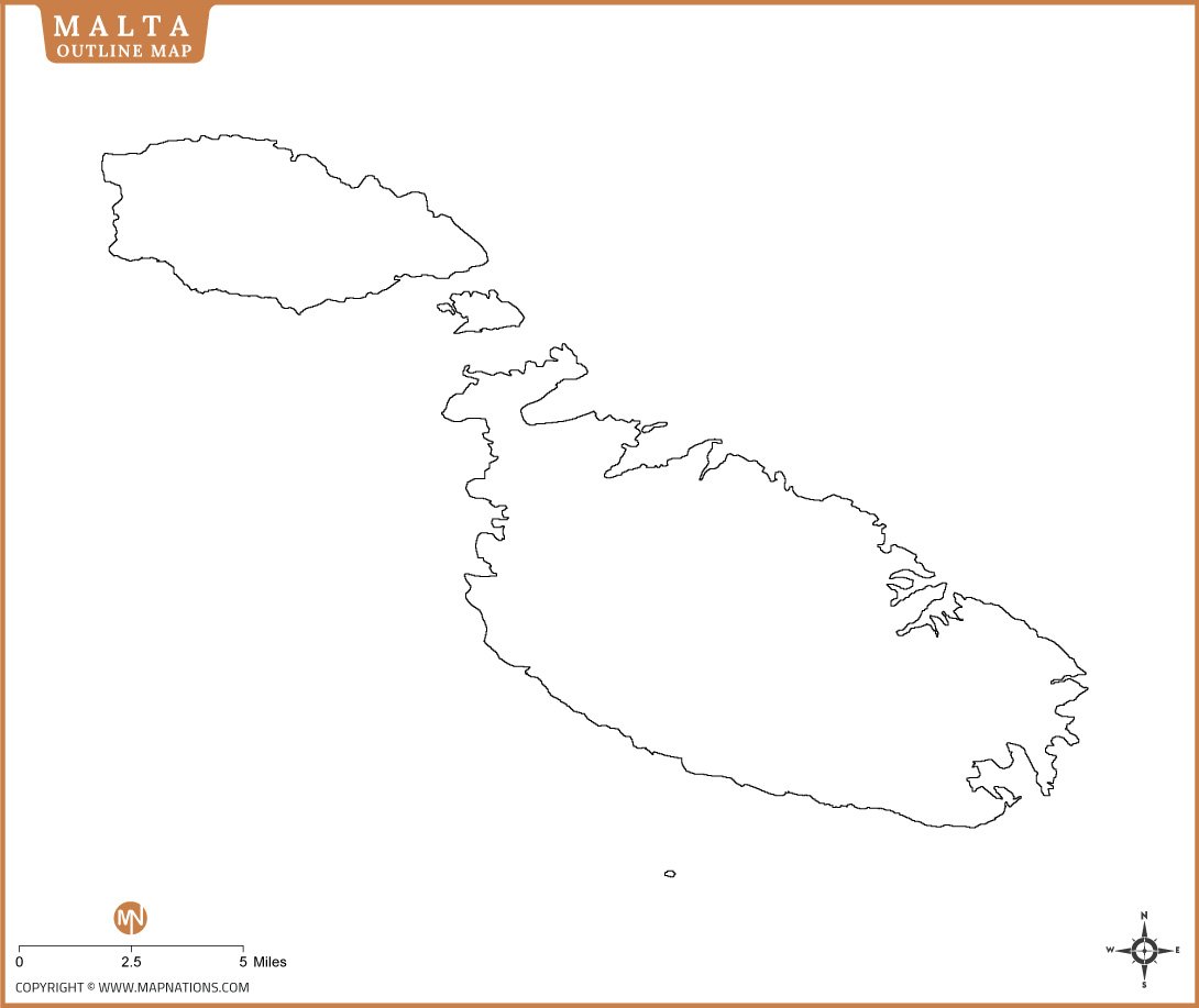 This blank outline map of Malta features clearly defined regional boundaries, making it ideal for educational use, classroom assignments, and geography quizzes. Teachers can use it for printable worksheets, while students can label or color regions. It's also suitable for GIS users and researchers needing a clean, editable base map.