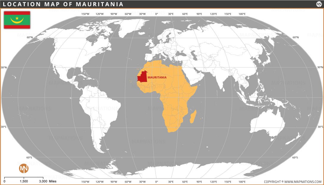 This location map of Mauritania clearly illustrates the country’s position in northwest Africa within a global perspective. Mauritania is highlighted against the African continent, helping viewers understand its geographic relationship to Europe, the Middle East, and the Atlantic Ocean. The map is ideal for educational materials, atlases, and presentations, offering a simple yet effective way to identify Mauritania’s placement on the world map. It supports geographic learning, spatial awareness, and international reference needs.