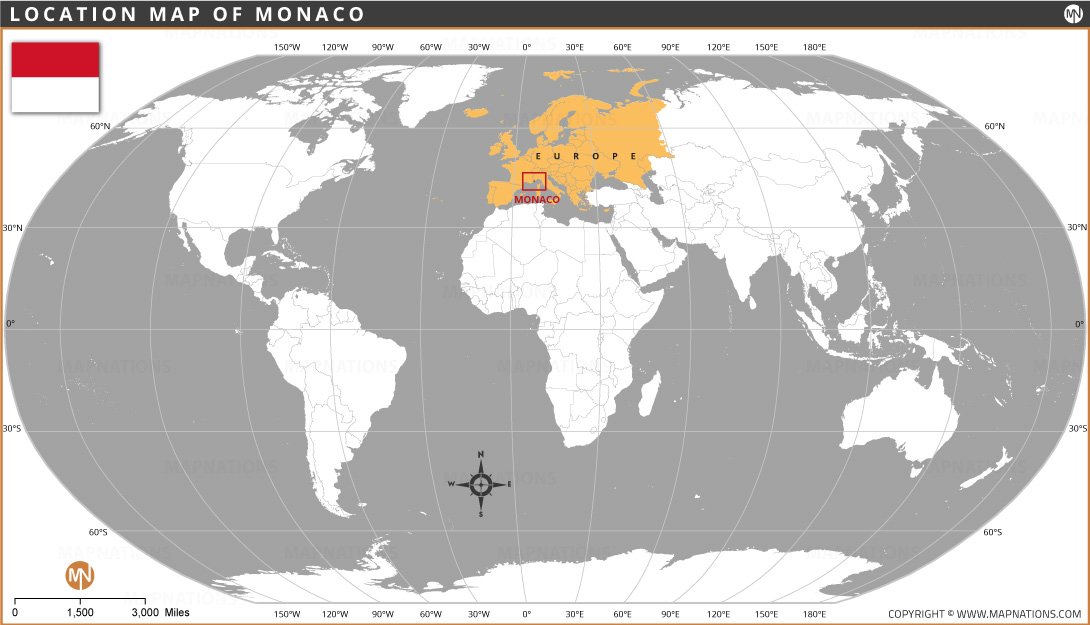 This location map clearly identifies Monaco’s position in the world, emphasizing its location in Western Europe along the Mediterranean Sea. The highlighted region shows Monaco bordered by France and situated near major European nations. The map provides a global perspective, helping viewers understand Monaco’s geographical context relative to continents, latitudes, and surrounding regions. Ideal for educational, geographic, and travel-related use, it visually communicates where Monaco is located on the world map with clarity and accuracy.