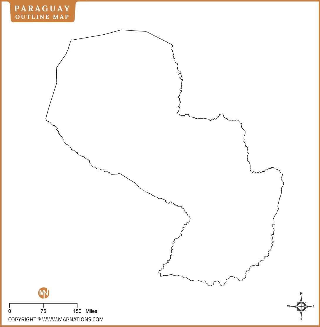 This blank outline map of Paraguay features clearly defined regional boundaries, making it ideal for educational use, classroom assignments, and geography quizzes. Teachers can use it for printable worksheets, while students can label or color regions. It's also suitable for GIS users and researchers needing a clean, editable base map.