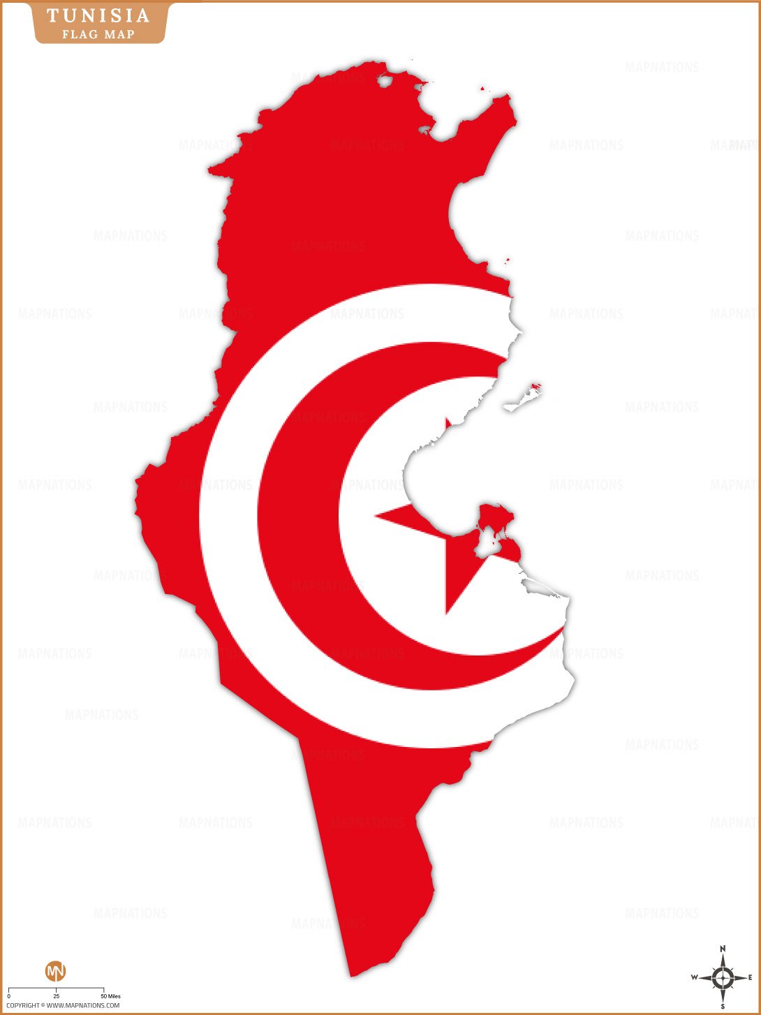 This Tunisia flag map creatively combines the national flag with the country's geographic outline, which symbolizes unity and national pride. The red background represents resistance and struggle, while the white circle, crescent, and star signify peace and Islamic heritage. This flag map highlights Tunisia's strong identity, making it a useful visualization for educational, cultural, and travel purposes, as well as an impressive representation of the nation's independence and sovereignty.