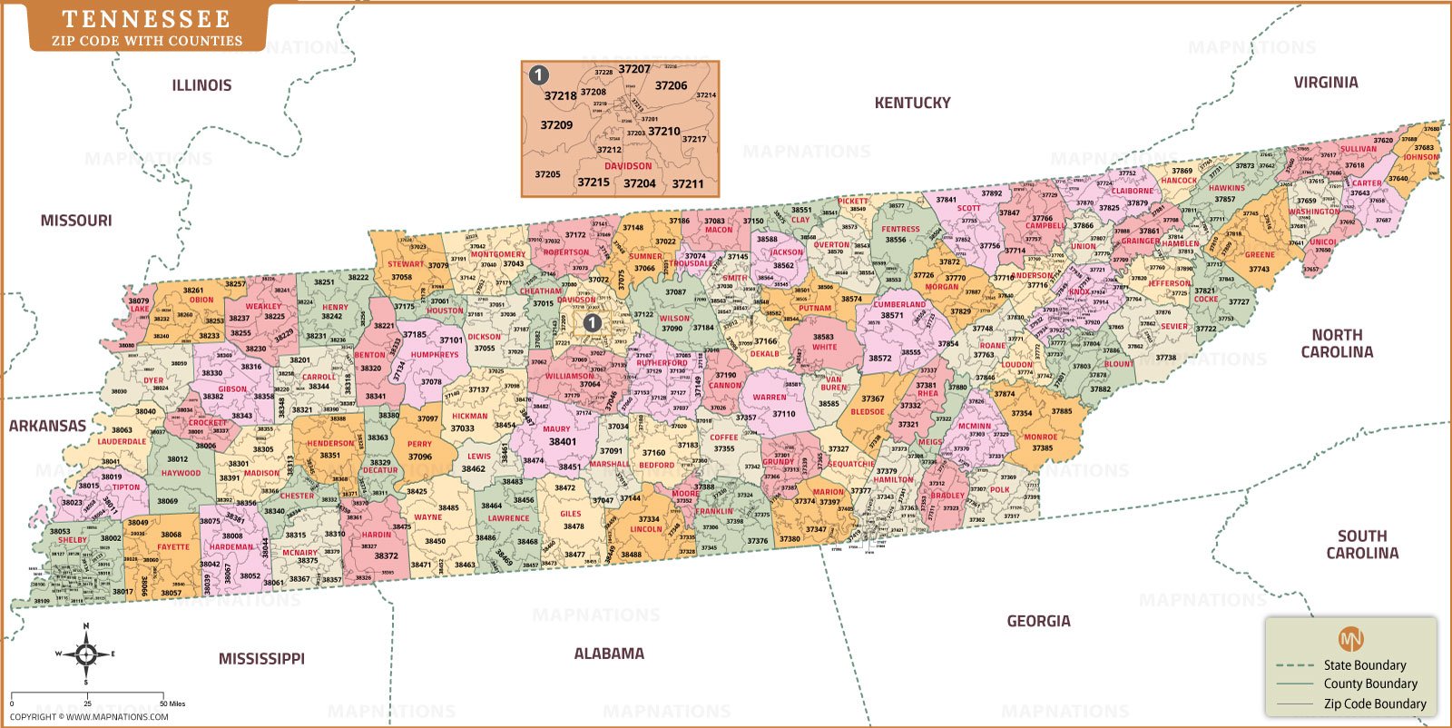 This map is useful for logistics planning, demographic analysis, mailing optimization, and educational reference. County boundaries combined with ZIP codes support business expansion research and service coverage decisions. The legend identifies state, county, and ZIP boundaries, improving readability. Overall, the map offers a comprehensive overview of Tennessee’s administrative structure, helping users locate areas quickly and understand regional relationships across the state for better spatial clarity purposes.